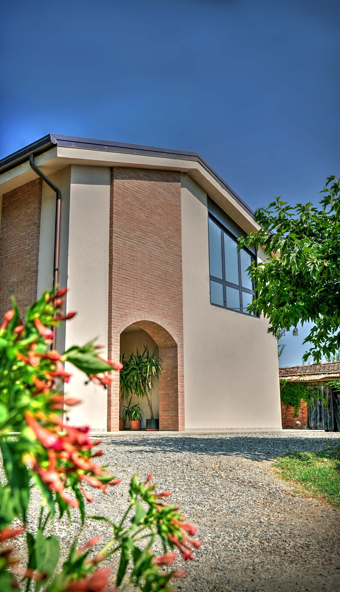 L’edificio ha ottenuto la classe energetica A4 grazie a una significativa coibentazione delle pareti e della copertura, all’installazione di infissi ad alte prestazioni, impianti in pompa di calore ibridi e fotovoltaico con accumulo in copertura.