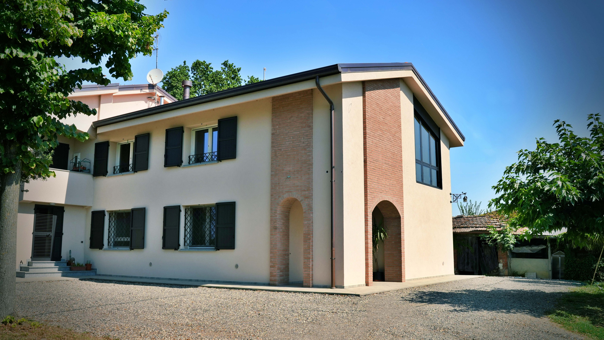 L’intervento descritto riguarda la riqualificazione energetica e il miglioramento sismico di un edificio bifamiliare situato in ambito agricolo.